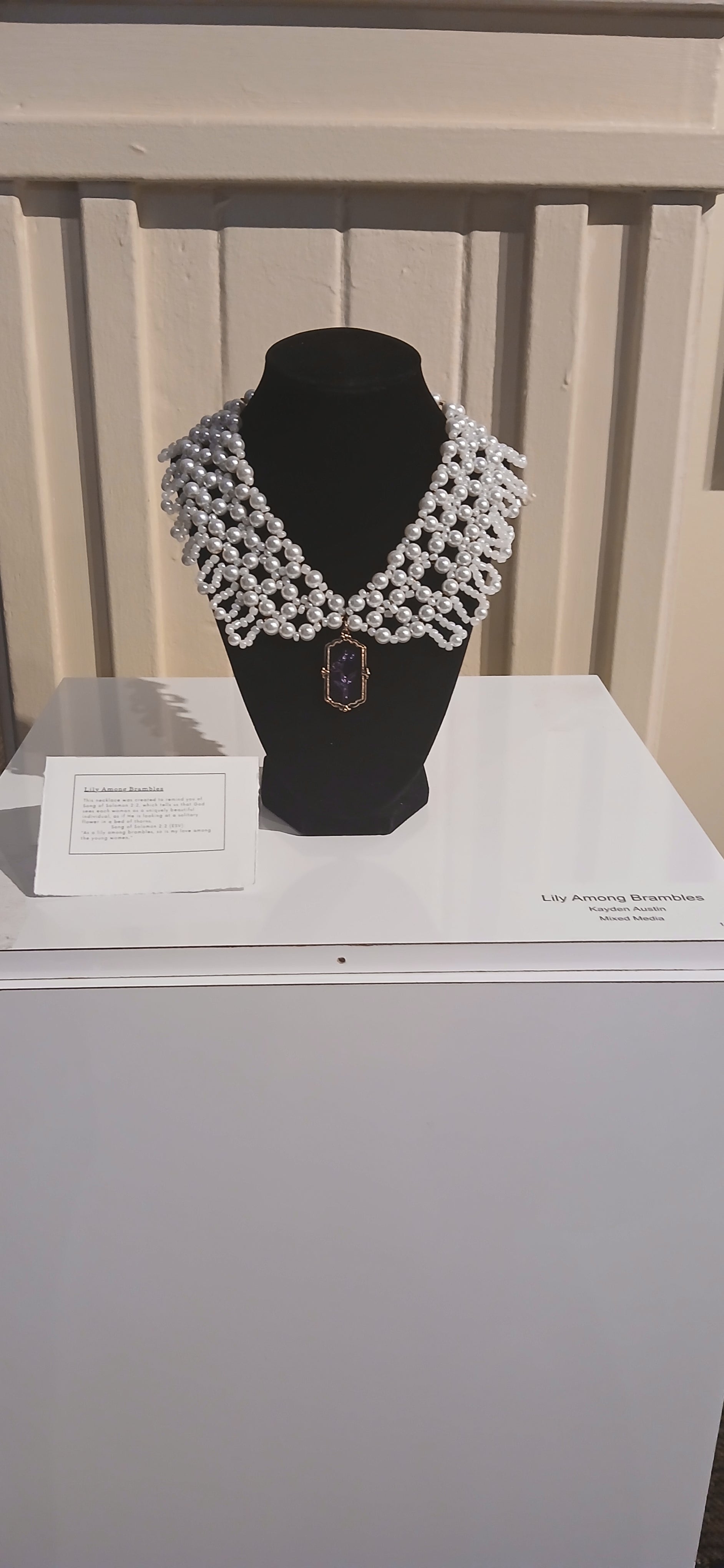 This elegant pearl collar necklace was created to remind you of who you are and Whose you are. Each time you look at the framed flower cameo, you can contemplate what God says about you in Song of Solomon 2:2 (ESV):