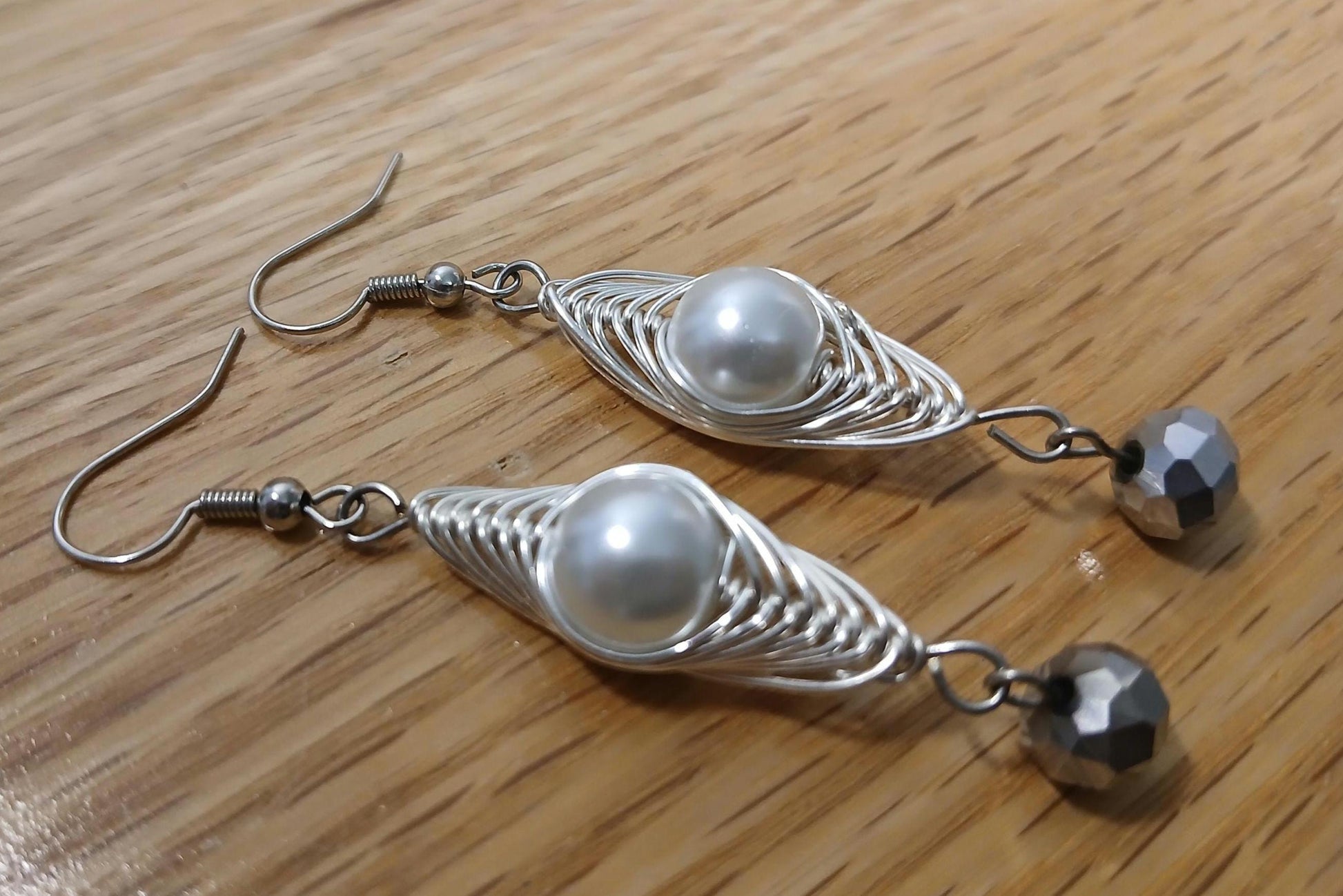 Praise the LORD at All Times - Wirework Drop Earrings Fishhook Earwire Elegant Glass Pearl Jewelry